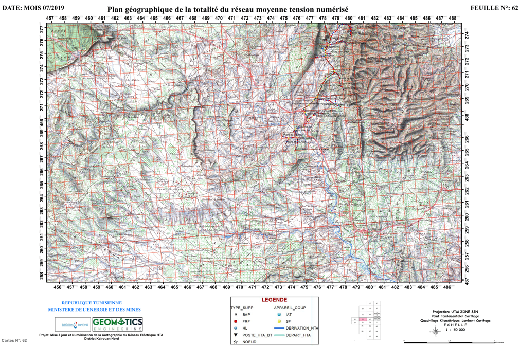 Nous sommes engagés avec le district Kairouan afin de leur fournir les cartographies de plus que 1500km du réseau électrique moyenne tension et ce le long du territoire du gouvernorat de Kairouan.